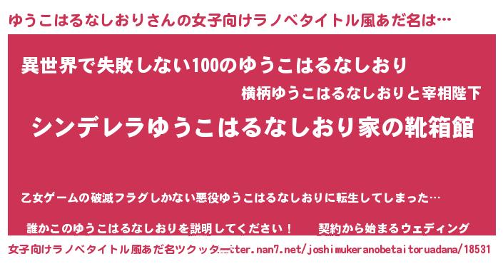 | 男性向けラノベタイトル風あだ名 | 『緋弾のユウコハルナシオリ』 |