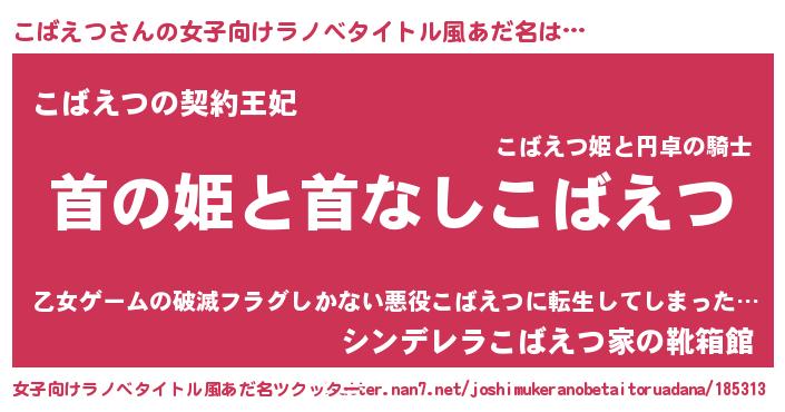 | 胡散臭い通販商品みたいなあだ名 | 『来世でも幸せになれる招き猫…その名も「こばえつ」』 |