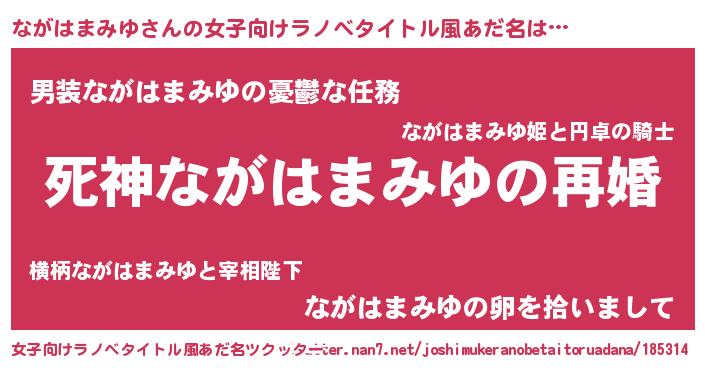 | 男性向けラノベタイトル風あだ名 | 『ノーゲーム・ノーナガハマミユ』 |