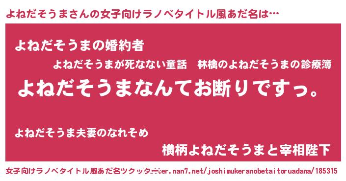 | 意味不明あだ名 | 『自称よねだそうま』 |