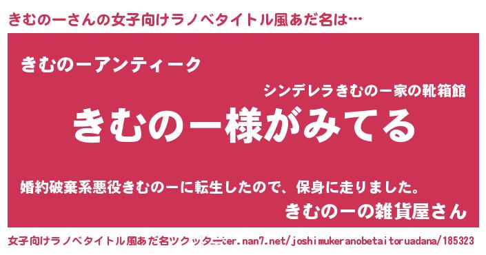 | 男性向けラノベタイトル風あだ名 | 『きむのーの嫁は女の子じゃないと思った?』 |