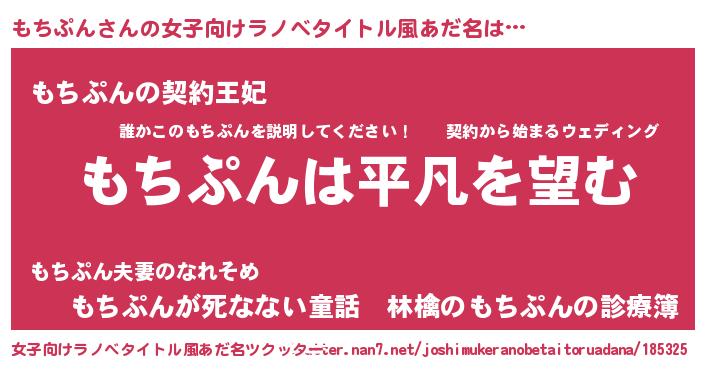 | 胡散臭い通販商品みたいなあだ名 | 『信頼と実績のサプリメント…その名も「もちぷん」』 |