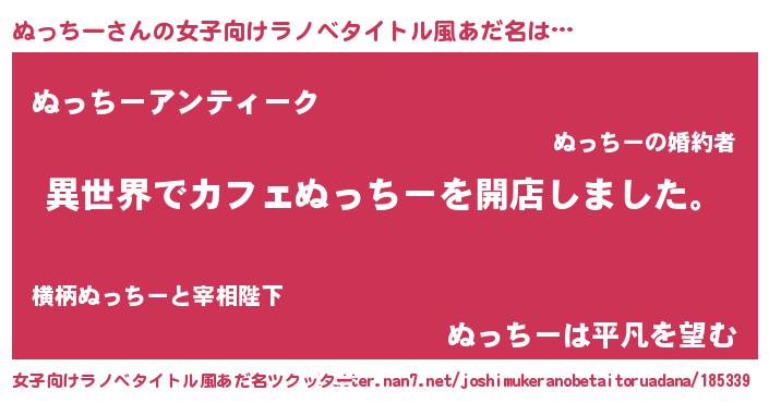 | 男性向けラノベタイトル風あだ名 | 『誰もが恐れるあのぬっちーが、ぼくの専属メイドになるようです。』 |
