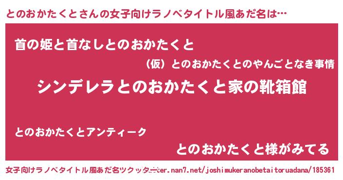 | 胡散臭い通販商品みたいなあだ名 | 『信頼と実績のサプリメント…その名も「とのおかたくと」』 |