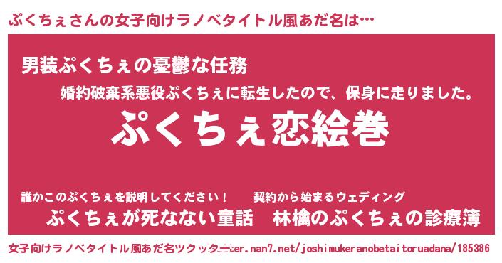 | 男性向けラノベタイトル風あだ名 | 『ノーゲーム・ノープクチェ』 |