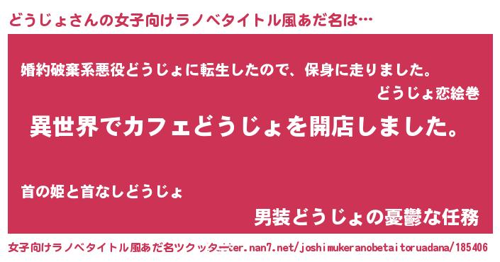 | 男性向けラノベタイトル風あだ名 | 『誰もが恐れるあのどうじょが、ぼくの専属メイドになるようです。』 |