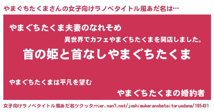 | ファンタジー風あだ名 | 『クインヤット』『ヤマディッシュ』 |