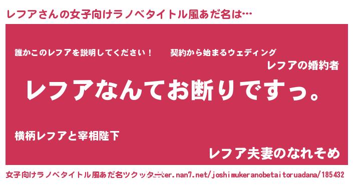 | 男性向けラノベタイトル風あだ名 | 『魔法科高校のレフア』 |