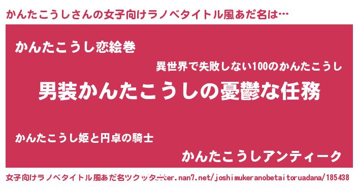 | 男性向けラノベタイトル風あだ名 | 『うちのかんたこうしが世界を掌握している!』 |