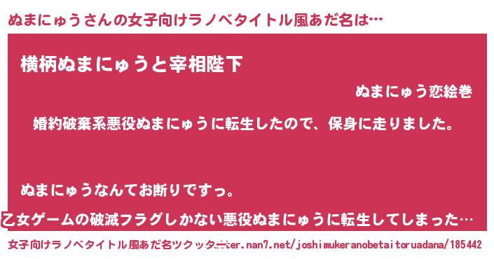ぬまにゅうさんの女子向けラノベタイトル風あだ名