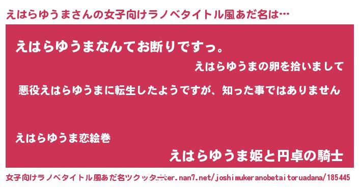 | 男性向けラノベタイトル風あだ名 | 『この素晴らしい世界にえはらゆうまを!』 |