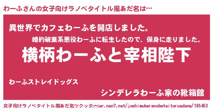 | 胡散臭い通販商品みたいなあだ名 | 『来世でも幸せになれる健康食品…その名も「わーふ」』 |