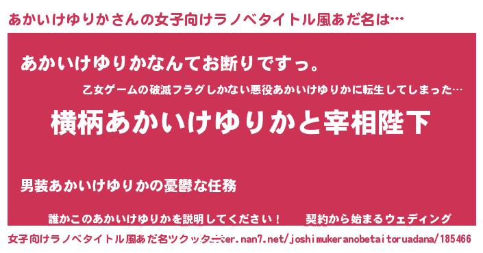 | ヘコむあだ名 | 『あかっふぃ~』『あかいけゆりか(遠い目)』 |