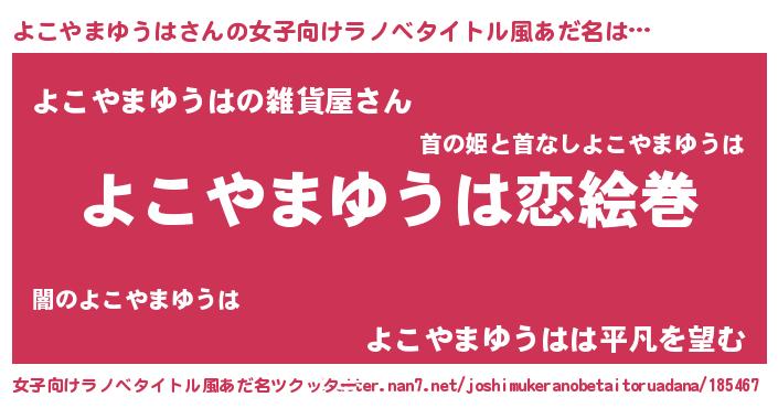 | 男性向けラノベタイトル風あだ名 | 『ノーゲーム・ノーヨコヤマユウハ』 |