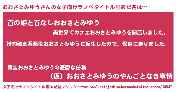 | 男性向けラノベタイトル風あだ名 | 『転生したらおおさとみゆうだった件』 |