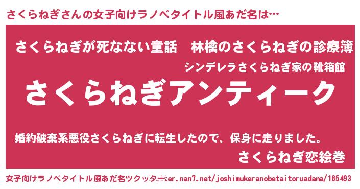 | 男性向けラノベタイトル風あだ名 | 『魔法科高校のさくらねぎ』 |
