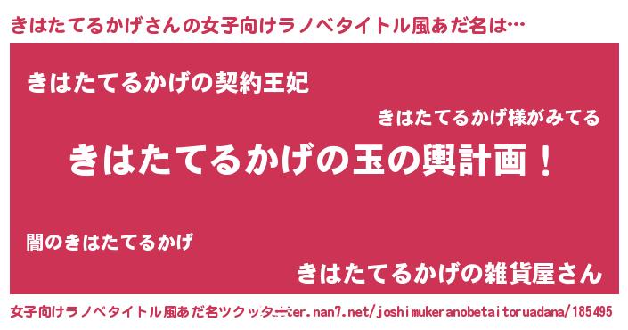 | 胡散臭い通販商品みたいなあだ名 | 『来世でも幸せになれる健康食品…その名も「きはたてるかげ」』 |
