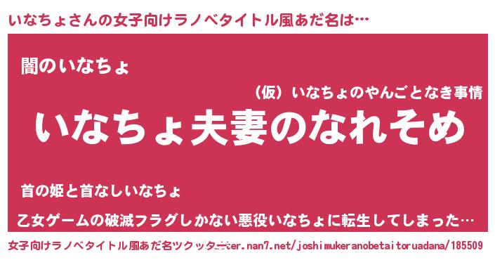 | 男性向けラノベタイトル風あだ名 | 『おまえをオタクにしてやるから、俺をいなちょにしてくれ! 』 |