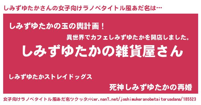| 男性向けラノベタイトル風あだ名 | 『やはりしみずゆたかの青春ラブコメはまちがっている 』 |