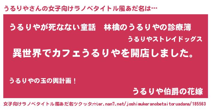 | ヘコむあだ名 | 『うるりや(爆)』『牛乳』『うるっ子』 |