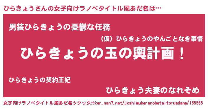 | ヒーロー風カッコイイあだ名 | 『慈愛の使者ひらきょう』『暗黒騎士ヒラ』 |