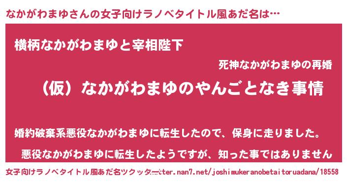 | 男性向けラノベタイトル風あだ名 | 『なかがわまゆの憂鬱』 |