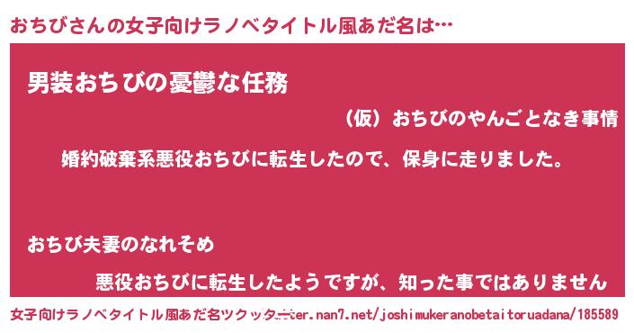 | 男性向けラノベタイトル風あだ名 | 『オチビスレイヤー』『おちびの憂鬱』 |