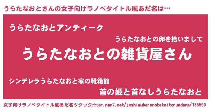 | 男性向けラノベタイトル風あだ名 | 『やはりうらたなおとの青春ラブコメはまちがっている 』 |