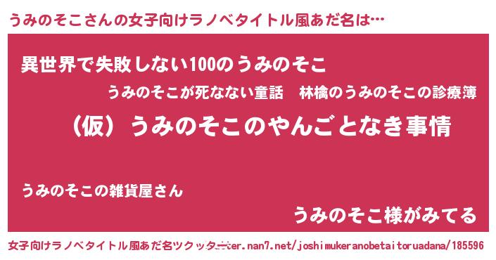 | 男性向けラノベタイトル風あだ名 | 『うみのそこの憂鬱』 |
