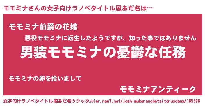 | 男性向けラノベタイトル風あだ名 | 『冴えないモモミナの育てかた』 |