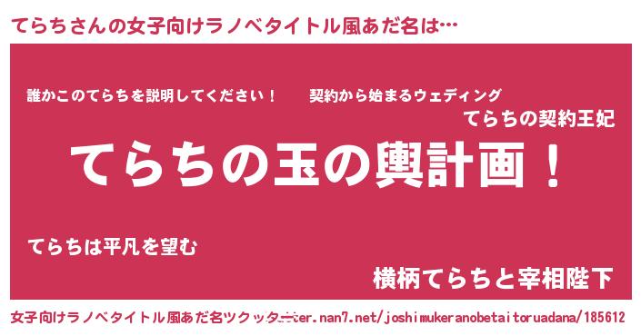 | 胡散臭い通販商品みたいなあだ名 | 『モテモテ間違いなしブレスレット…その名も「てらち」』 |