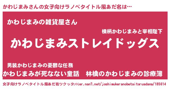 | 男性向けラノベタイトル風あだ名 | 『Re:かわじまみから始める異世界生活』 |