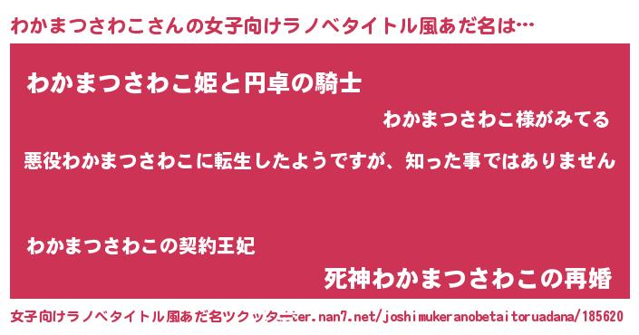 | 胡散臭い通販商品みたいなあだ名 | 『あなたにだけ特別に提供する100年もののヴィンテージワイン…その名も「わかまつさわこ」』 |