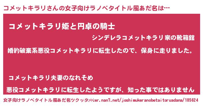 | 胡散臭い通販商品みたいなあだ名 | 『モテモテ間違いなし霊験あらたかなお札…その名も「コメットキラリ」』 |