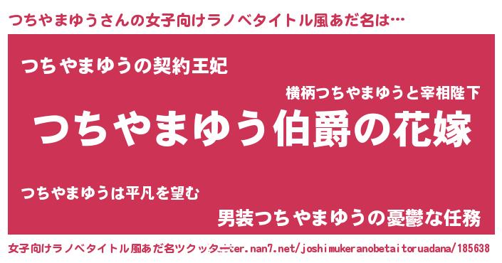 | 男性向けラノベタイトル風あだ名 | 『やはりつちやまゆうの青春ラブコメはまちがっている 』 |