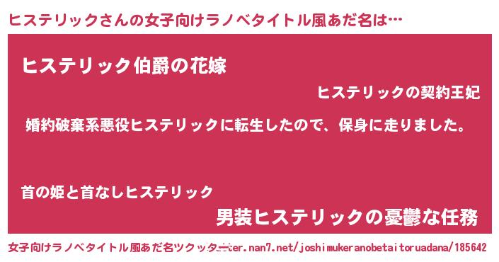 | 男性向けラノベタイトル風あだ名 | 『ヒステリックスレイヤー』 |