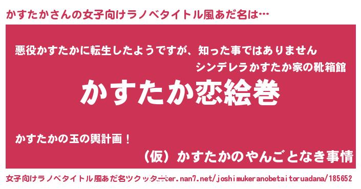 | 男性向けラノベタイトル風あだ名 | 『おまえをオタクにしてやるから、俺をかすたかにしてくれ! 』 |