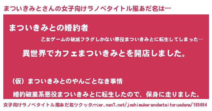 | 男性向けラノベタイトル風あだ名 | 『誰もが恐れるあのまついきみとが、ぼくの専属メイドになるようです。』 |