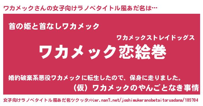 | 男性向けラノベタイトル風あだ名 | 『ノーゲーム・ノーワカメック』 |
