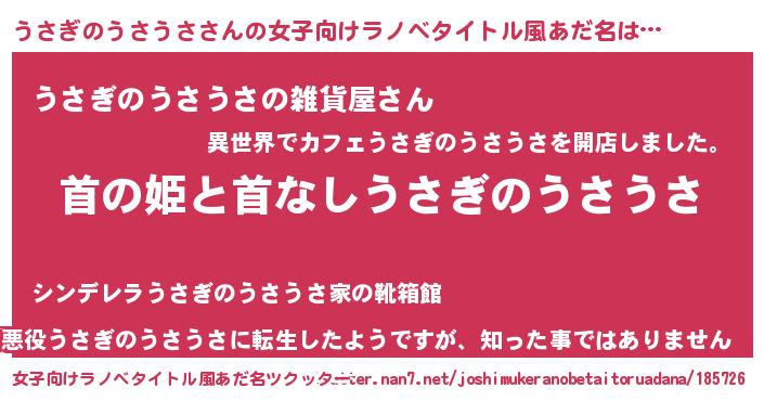 | 男性向けラノベタイトル風あだ名 | 『はたらくうさぎのうさうささま!』 |