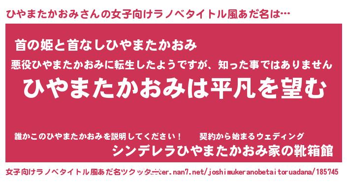 | 男性向けラノベタイトル風あだ名 | 『ダンジョンにひやまたかおみを求めるのは間違っているだろうか』 |