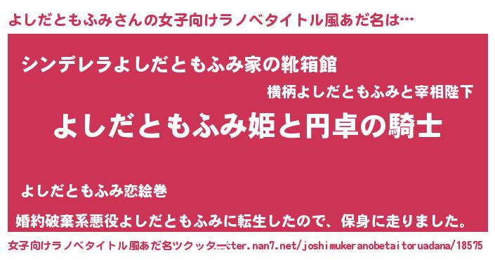 | 男性向けラノベタイトル風あだ名 | 『よしだともふみの憂鬱』 |