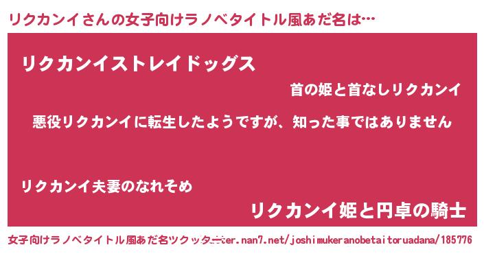 | 男性向けラノベタイトル風あだ名 | 『この素晴らしい世界にリクカンイを!』 |
