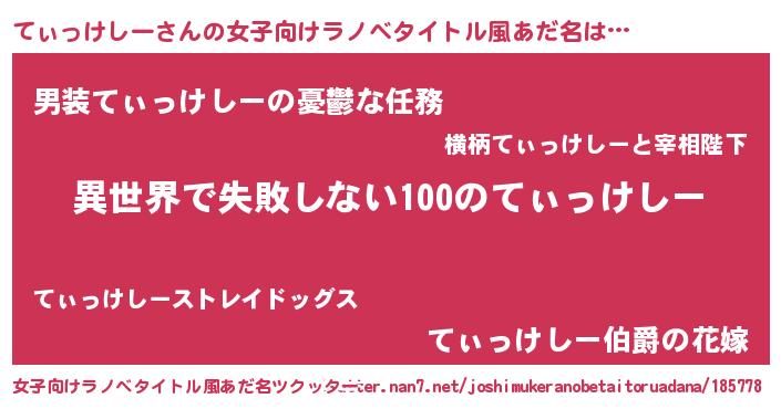 | 胡散臭い通販商品みたいなあだ名 | 『絶対に幸福をもたらす健康食品…その名も「てぃっけしー」』 |
