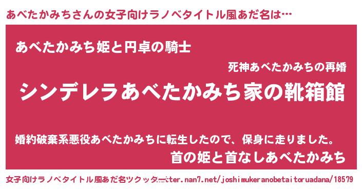 | 恥ずかしいあだ名 | 『プリティーあべたかみち』『あべちん』 |