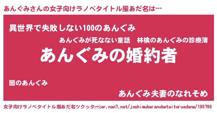 | ファンタジー風あだ名 | 『エターナルアングミー』『クインアット』 |