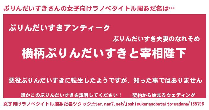 | 男性向けラノベタイトル風あだ名 | 『ぷりんだいすきに滅ぼされるだけの簡単なお仕事です』 |