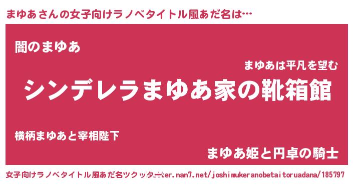 | 意味不明あだ名 | 『自称まゆあ』『ペロリンまゆあ』 |