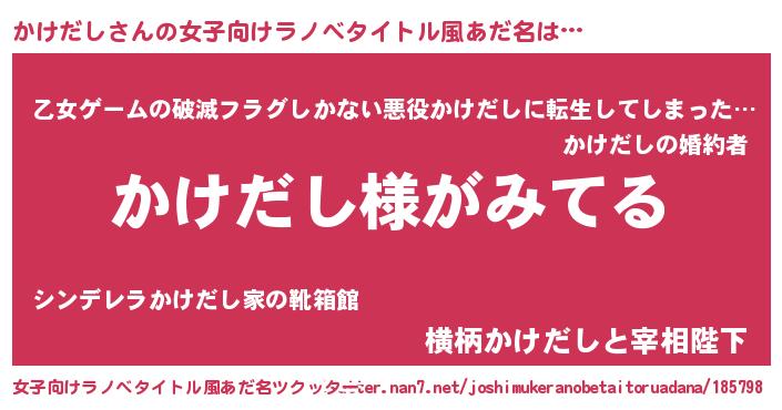 | 男性向けラノベタイトル風あだ名 | 『かけだしの嫁は女の子じゃないと思った?』 |