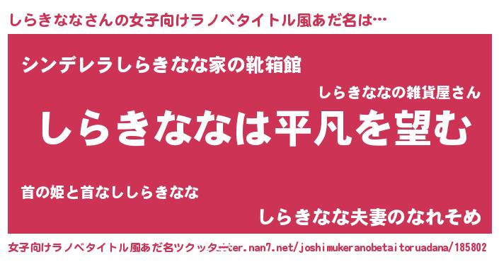 | 男性向けラノベタイトル風あだ名 | 『ダンジョンにしらきななを求めるのは間違っているだろうか』 |